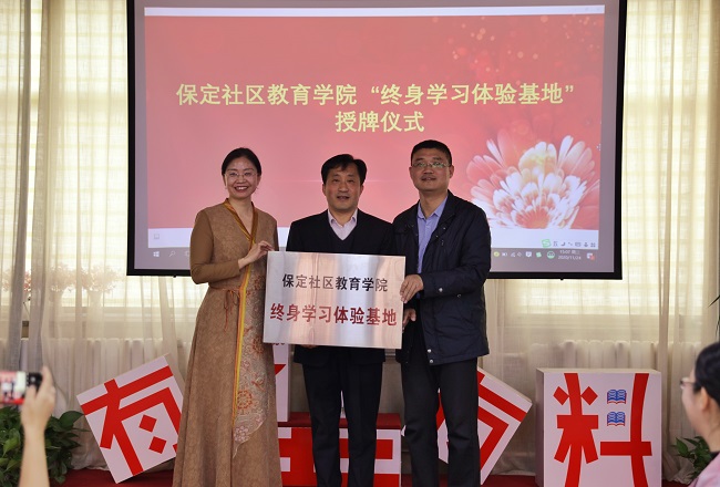11月24日,保定社区教育学院终身学习体验基地在“全民素养提升联盟”挂牌。我校党委书记周贵斌,校长、社区教育学院院长李树进,副校长、社区教育学院副院长赵国华及“全民素养提升联盟”发起人等出席授牌仪式。李树进为“全民素养提升联盟”授牌。