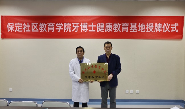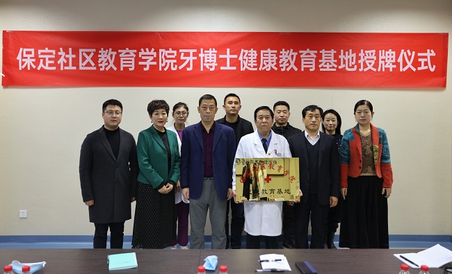 11月24日,保定社区教育学院健康教育基地在“牙博士口腔医院”挂牌。我校党委书记周贵斌,校长、保定社区教育学院院长李树进,副校长、保定社区教育学院副院长赵国华,“牙博士口腔医院”副院长贾军锁、冯杏茹总监、荣海威总监等出席授牌仪式。周贵斌为“牙博士口腔医院”授牌。