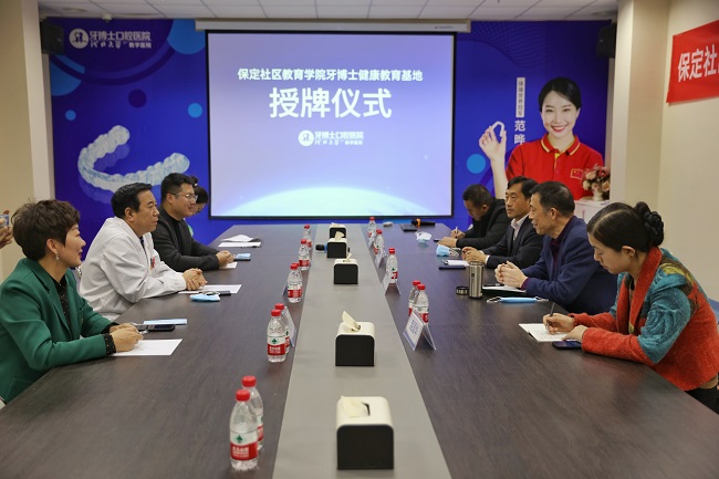 周贵斌介绍了我市社区教育发展情况,并指出,21世纪是人类追求健康的世纪,口腔医院属于大健康产业的一部分,“牙博士口腔医院”开展的社区公益活动为保定社区教育做出了贡献。开展社区教育要坚持统筹协调,多方参与,广泛动员社会力量,共同参与社区教育,形成党政统筹领导、教育部门牵头、相关部门配合、社会各界支持、群众广泛参与的社区教育格局。希望“牙博士口腔医院”与保定社区教育学院加强合作,采取知识讲座、公益宣传、义诊等多种形式,提供社区居民需要的服务,有效宣传健康教育基本知识,促进全民口腔健康和全身健康。