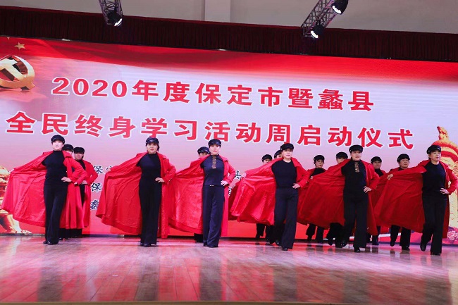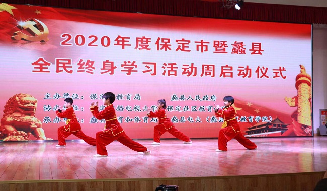 12月8日下午,保定市暨蠡县2020年全民终身学习活动周启动仪式在蠡县隆重举行。市教育局副局长邢智丽、高职成教处处长杨育才,保定广播电视大学(保定社区教育学院)副校长赵国华,蠡县副县长王红强、教体局局长张亚强等出席开幕式,县直相关单位、县电大负责人及各乡镇中心校代表及社会各界群众代表近300人参加会议。
