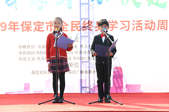 为全面落实《国家中长期教育改革和发展规划纲要(2010-2020年)》,加快发展继续教育,推进学习型社会建设,11月5日,以“推动全民终身学习 加快建设学习型保定”为主题的保定市2019年全民终身学习活动周启动仪式在大激店广场举行。