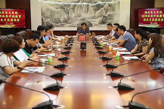 为了更好的推进2019年秋季招生工作,确保系统招生顺利开展,圆满完成既定招生目标,我校于2019年7月16日、17日、19日分为三组召开了由21所县(市、区)电大分校校长、招办主任参加的座谈会。会议由主管招生工作的副校长薛玉琪主持,校党委书记周贵斌、校长李树进参加了会议。