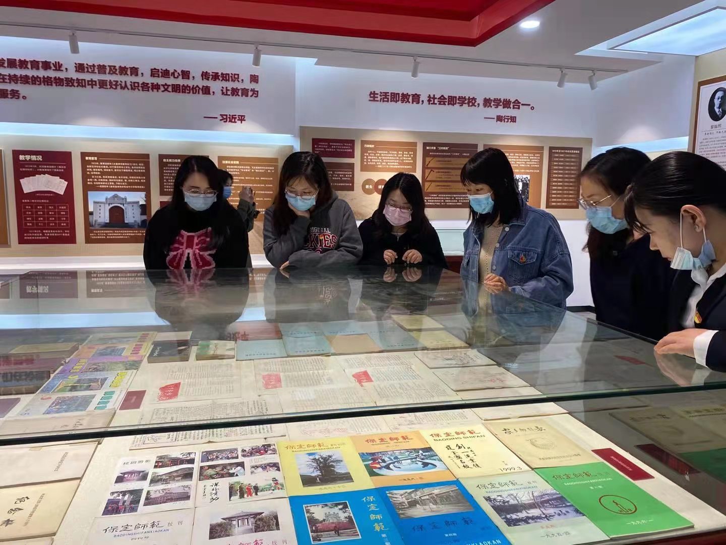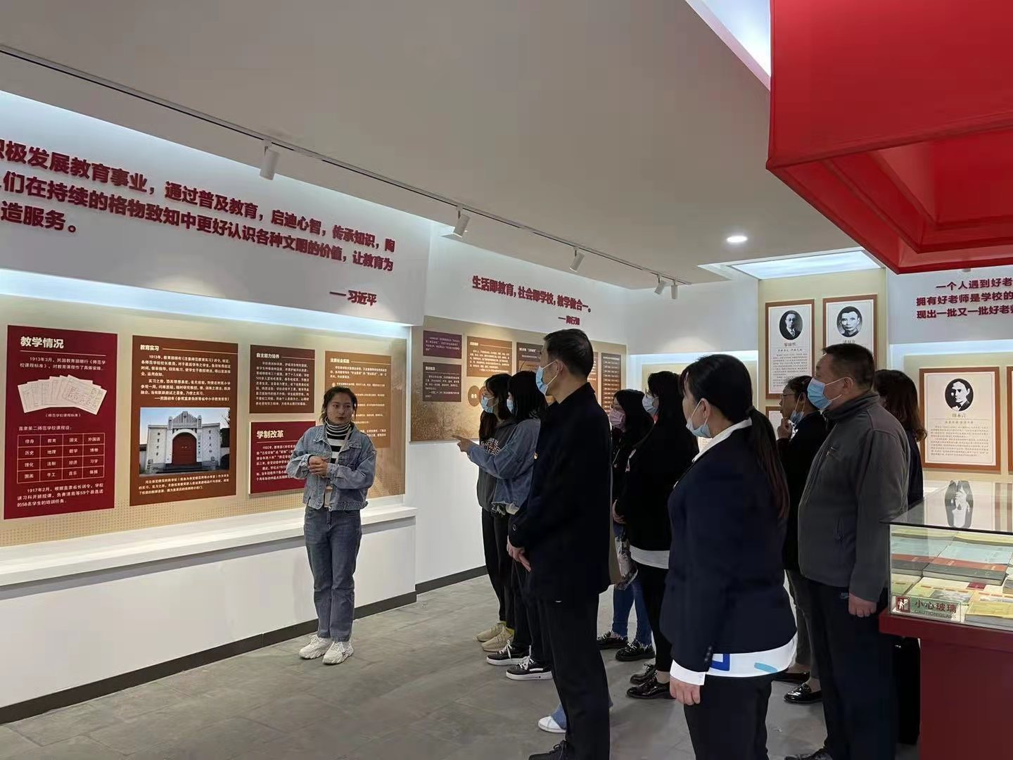 祭扫结束后,全体党员共同参观了红二师纪念馆。纪念馆古朴庄严,静谧凝重,共有展室16间,分“启迪民智 严谨治学”“革新体制 思潮涌起”“投身革命 献身真理”“不忘初心 弘扬传承”四个篇章。通过照片、视频、实物以及丰富的文献资料,辅以现代科技元素,完整地将学校共产党员团结进步学生开展爱国护校斗争的光辉历史生动地呈现在眼前。伴随着讲解员的讲解,大家了解了红二师悠久的办学历程、深厚的文化底蕴和光荣的革命传统。