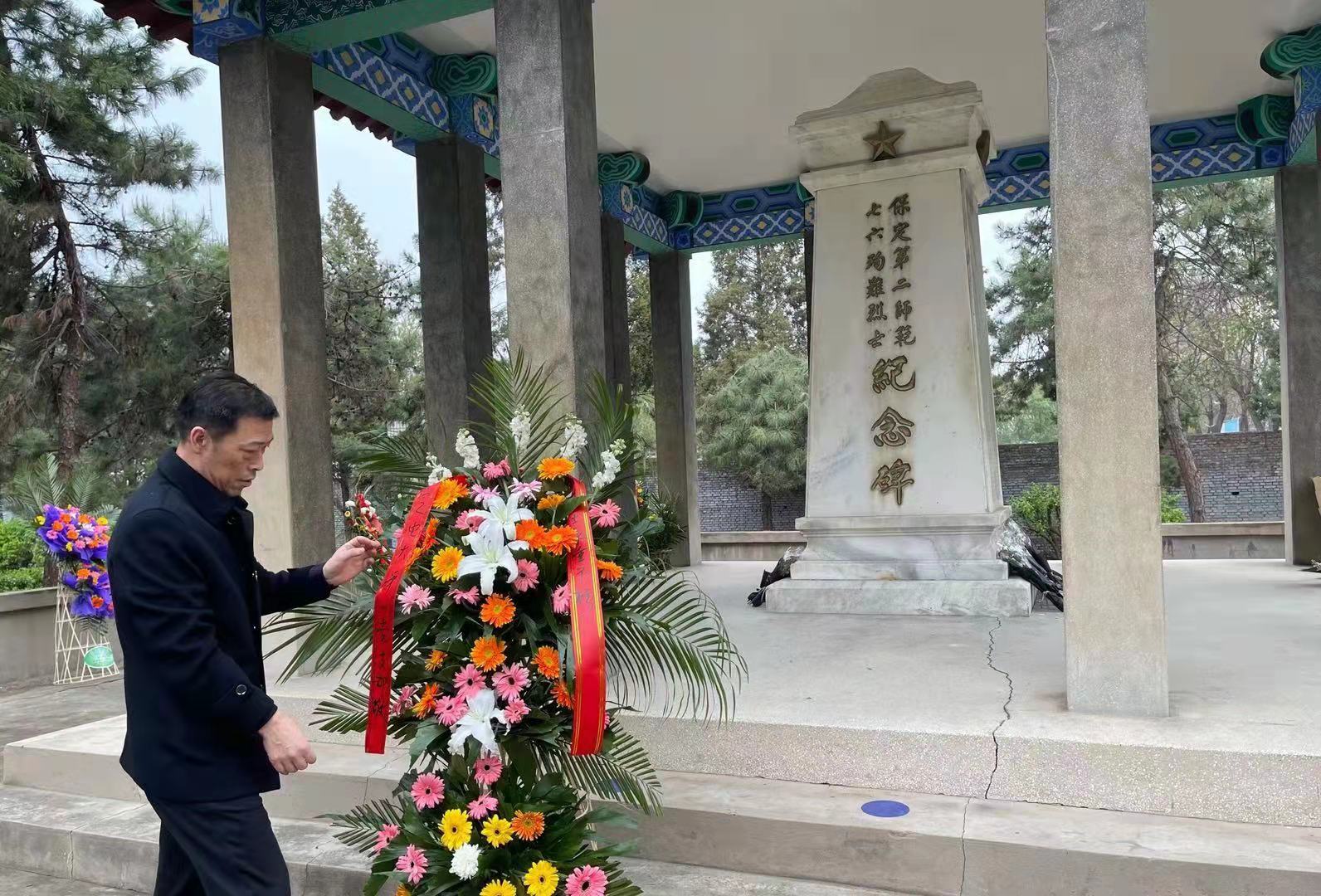 红二师纪念馆由保定市河北省立第二师范学校旧址和“七·六”烈士纪念园两部分组成。在“七·六”烈士纪念园,全体党员整齐排开,瞻仰烈士纪念碑,为烈士献上鲜花,寄托哀思。在烈士纪念碑前,党委书记周贵斌带领大家重温“七·六”烈士的英雄事迹,号召大家要铭记为中华民族复兴不惜献出生命的英雄们,传承红色基因,将敢于斗争的革命精神化为前行的力量。