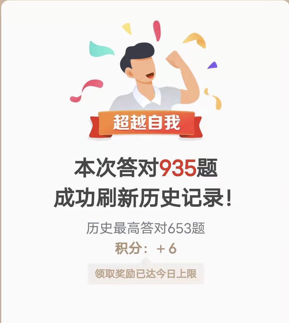 此次活动依托“学习强国”学习平台开展,各支部分别选派三名优秀代表进入“挑战答题”版块进行答题,在规定次数内以累积答题题目数量作为评选标准,答对题目多者获胜。活动现场,参赛党员全神贯注、冷静答题,得分记录不断被刷新,经过一个小时激烈的角逐,共评选出一等奖1名、二等奖4名、三等奖5名、优秀奖5名。第五支部陈鸥以单次935道答题数量的优异成绩拿到一等奖的荣誉。
