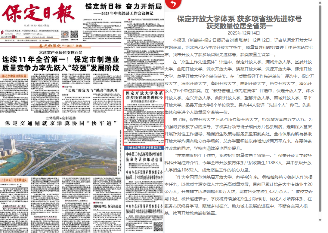 《保定日报》对我校“一村一名大学生计划”工作成果进行报道