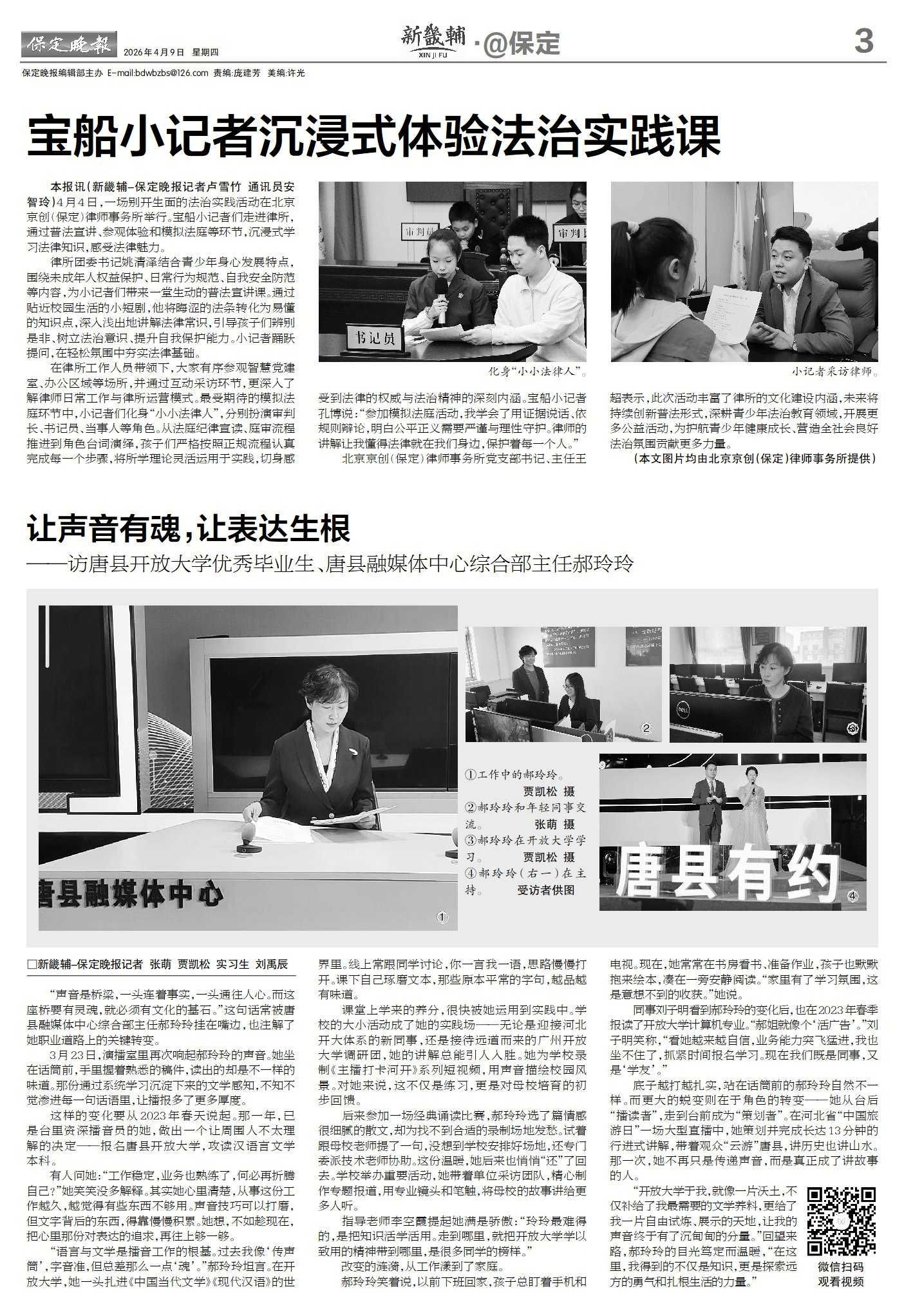 《保定日报》《保定晚报》对唐县开放大学优秀毕业生、唐县融媒体中心综合部主任郝玲玲进行报道