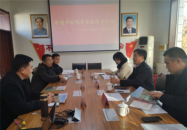 11月27日下午,市电大校长李树进一行3人到徐水电大进行实地综合评估检查。区教体局副局长贾树龙,徐水电大班子成员陪同检查。