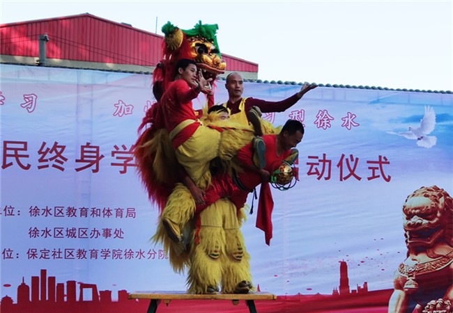 徐水社区教育学院院长唐海波主持仪式,区教育和体育局党组成员贾俊峰致辞。仪式上为崔庄镇、遂城镇等10个“社区教育活动基地”授牌。随后,大家一起观看了社区居民自编自导的反映社区居民继续教育成果的节目汇演,狮舞表演、舞蹈、腰鼓舞、太极拳、合唱等节目轮番登场,赢得了在场观众的热烈掌声,让广大社区居民近距离感受到了终身学习的魅力,受到与会人员的一致好评。(撰稿:孙春峰 审核;刘金水)