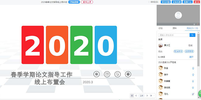 会后,各专业辅导教师将利用QQ群直播、“晓黑板”直播等形式对学员进行线上毕业实践环节培训。
