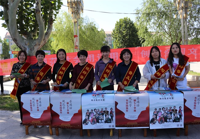 9月18日上午,满城社区教育学院在满城区人民广场开展主题为“普通话诵七十华诞,规范字书爱国情怀”的宣传推广活动,院长李宝齐及部分教师参加了此次活动。