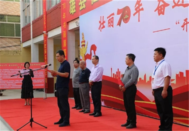 9月29日,由雄县教育局主办,雄县电大、社区教育学院、雄县教育工会承办的“壮丽七十年,奋进新时代”教师书画展在雄县电大社区教育学院隆重举行。雄县教育局副局长杨永强、雄县电大校长陈顺兴、书法家协会主席张福增、美术家协会主席金涌焱、老年大学校长李桐山、翰林书院院长魏德琦等领导出席开幕式。
