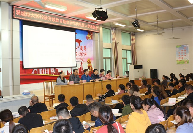 10月12日,满城电大2019秋开放教育新生开学典礼暨入学培训在学校五楼多功能厅隆重举行。满城电大校长李宝齐,班主任教师及500余名新生参加了会议。