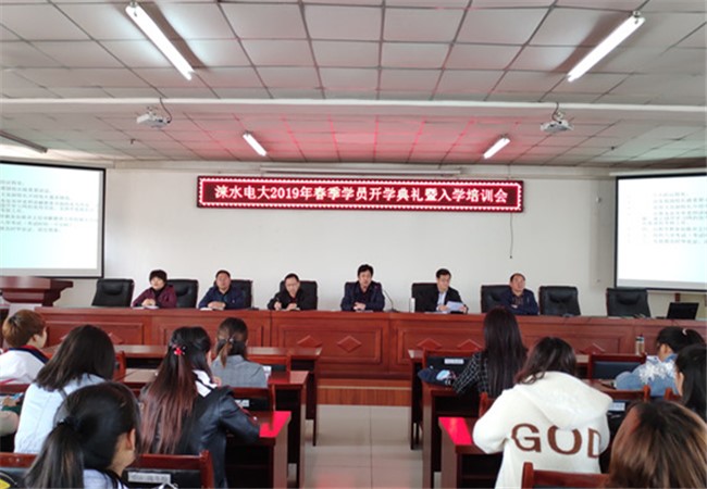 4月12日,涞水电大2019年春季学员开学典礼暨入学培训会在四楼会议室隆重举行。学校全体教职工及2019年春季开放教育新生700余人参加了此次活动。会议由副校长祖文良主持。