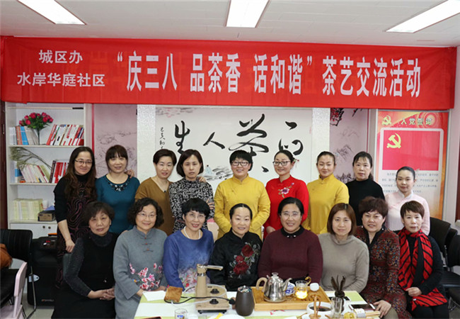 3月6日,徐水社区教育学院联合水岸华庭社区举办 “庆三八、品茶香、话和谐”茶艺交流活动,来自水岸华庭社区的工作人员、社区居民及徐水城区办领导、徐水社区教育学院工作人员共计28人参加。