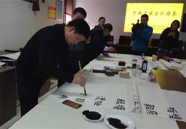活动中,五位专家边创作边讲解,深入浅出,循循善诱,领导和老师们边观摩边提问,揣测技法,理解意境。大家都认识到,书画不是华而不实的东西,而是经岁月积淀、饱经沧桑的人生精华,书画作品也展现了书画家对生命的感悟与创见。(撰稿:刘金水