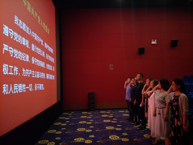 年如一日扎根太行山,不辞劳苦、不求回报地搞山区生态建设和科技富民事业,终因积劳成疾,突发心脏病离开人世的感人事迹,展现了当代共产党员“不忘初心、牢记使命”,执着追求的高贵品质和一心为民的公仆情怀。观影前,全体教师庄严宣誓,重温入党誓词。当看到影片中的李保国带病坚持在扶贫和科技第一线,很多人流下了眼泪。