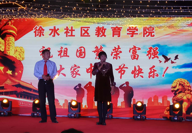 9月22日晚,徐水社区教育学院联合水岸华庭社区在社区幼儿园广场举办“迎中秋、庆国庆、共圆中国梦”文艺晚会,100余名社区演职人员参演,300余名社区居民观看。徐水区安肃镇城区办部长刘树立,徐水电大副校长刘金水,水岸华庭社区书记王学英出席了晚会。
