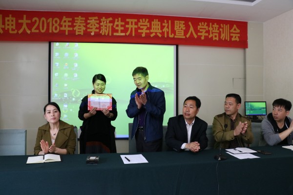 近日,蠡县电大2018春开放教育新生开学典礼暨入学培训在社区礼堂隆重举行,蠡县教育局副局长、蠡县电大校长刘少华出席并讲话。