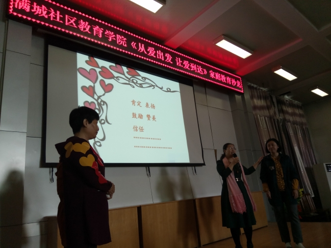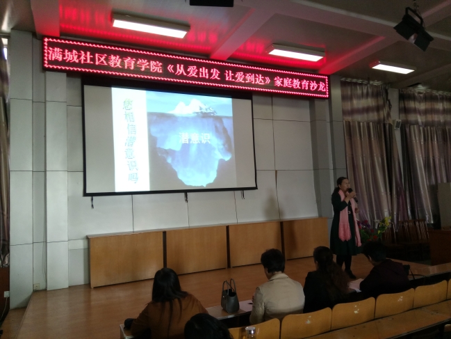 10月11日,满城社区教育学院开展了以《从爱出发 让爱到达》为主题的家庭教育沙龙,我校田东红老师(国家二级心理咨询师)主讲,共有46人参加。