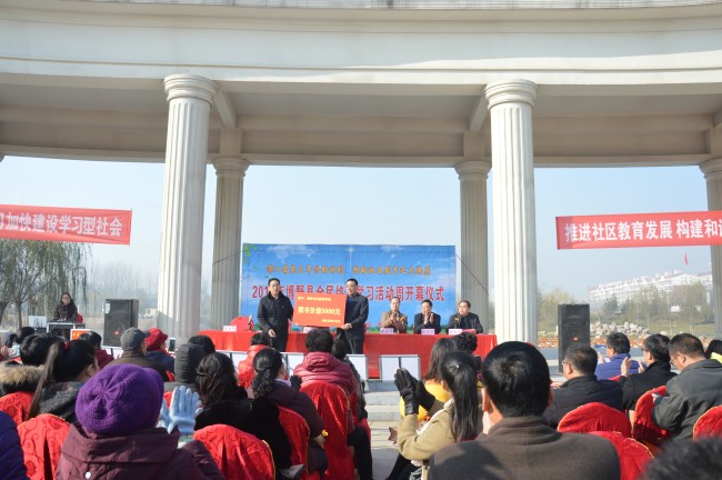 11月20日上午,博野社区教育学院隆重举办2017年博野全民学习活动周启动仪式。保定广播电视大学副校长、保定社区教育学院副院长赵国华,博野县政府副县长赵东辉,县委宣传部常务副部长刘占虎,县教育局党委书记、局长代朝辉,县教育局主任科员张跃昌,博野电大校长、博野社区教育学院院长吴建儒及有关县属党政部门领导,县教育局机关人员、博野电大全体教职工、社区志愿者代表,社区领导及居民代表共计300余人参加。