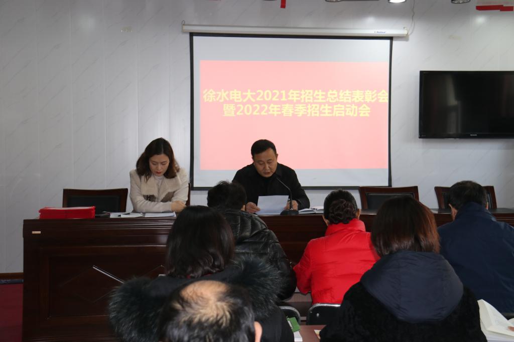 12月15日下午,徐水电大召开了2021年招生总结表彰会暨2022年春季招生工作启动会。我校全体领导和教师参加了会议。