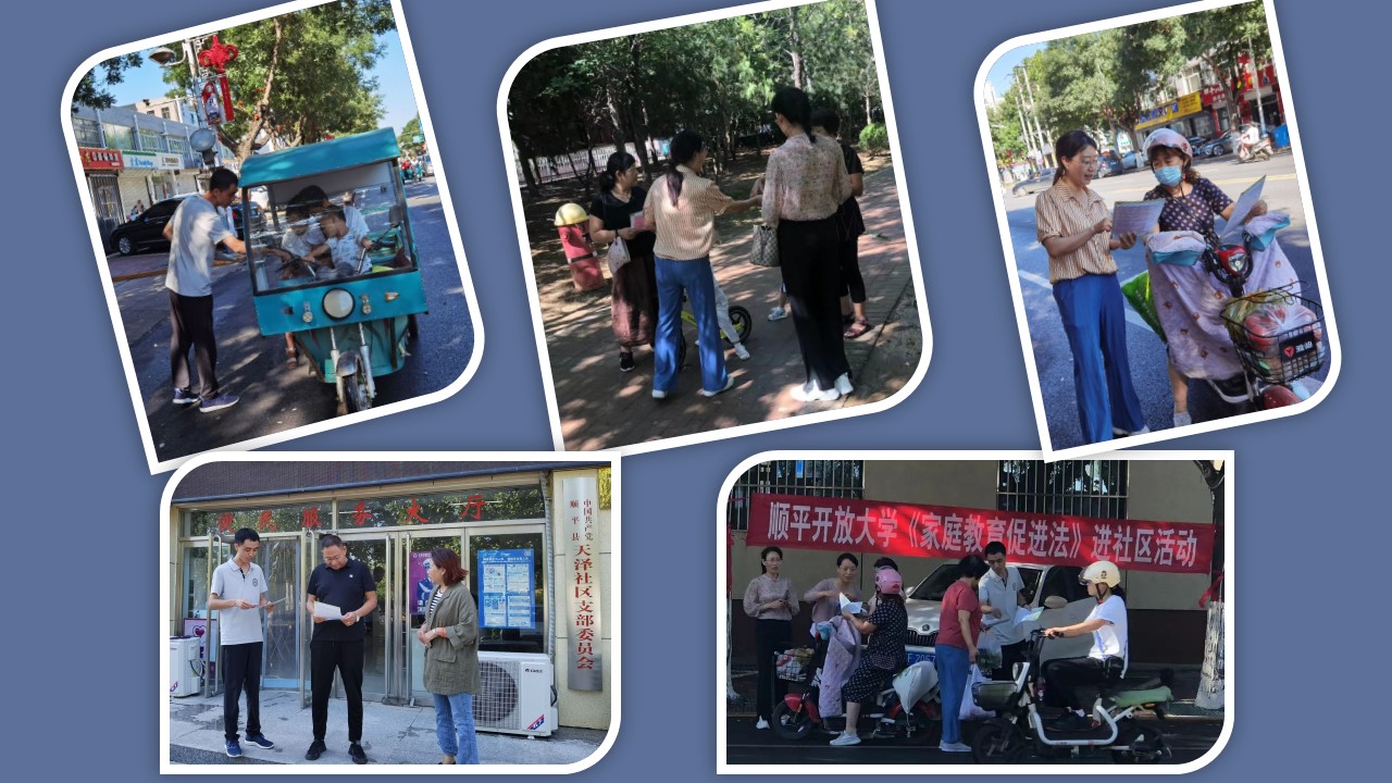 为引导家长科学进行家庭教育,护航未成年人健康成长,8月10日,顺平开放大学开展《家庭教育促进法》进社区宣传活动。