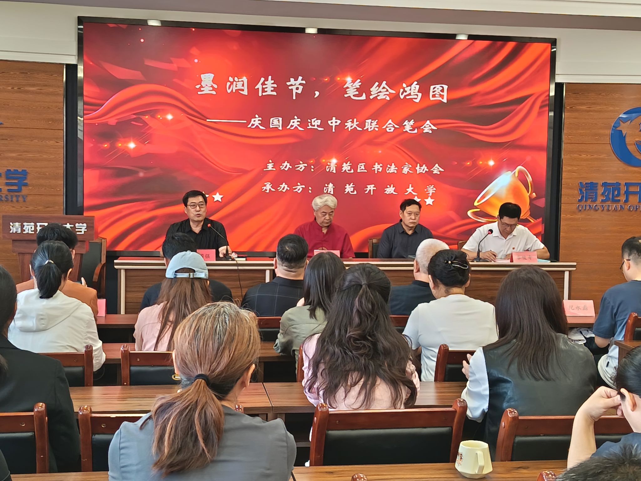 9 月 26 日上午,“墨润佳节,笔绘鸿图” 庆国庆迎中秋联合笔会在清苑开放大学举行。清苑区书法家协会、区文联、区老年书画研究会、区教师进修学校、尚古书院相关领导出席,众多书法爱好者参加。