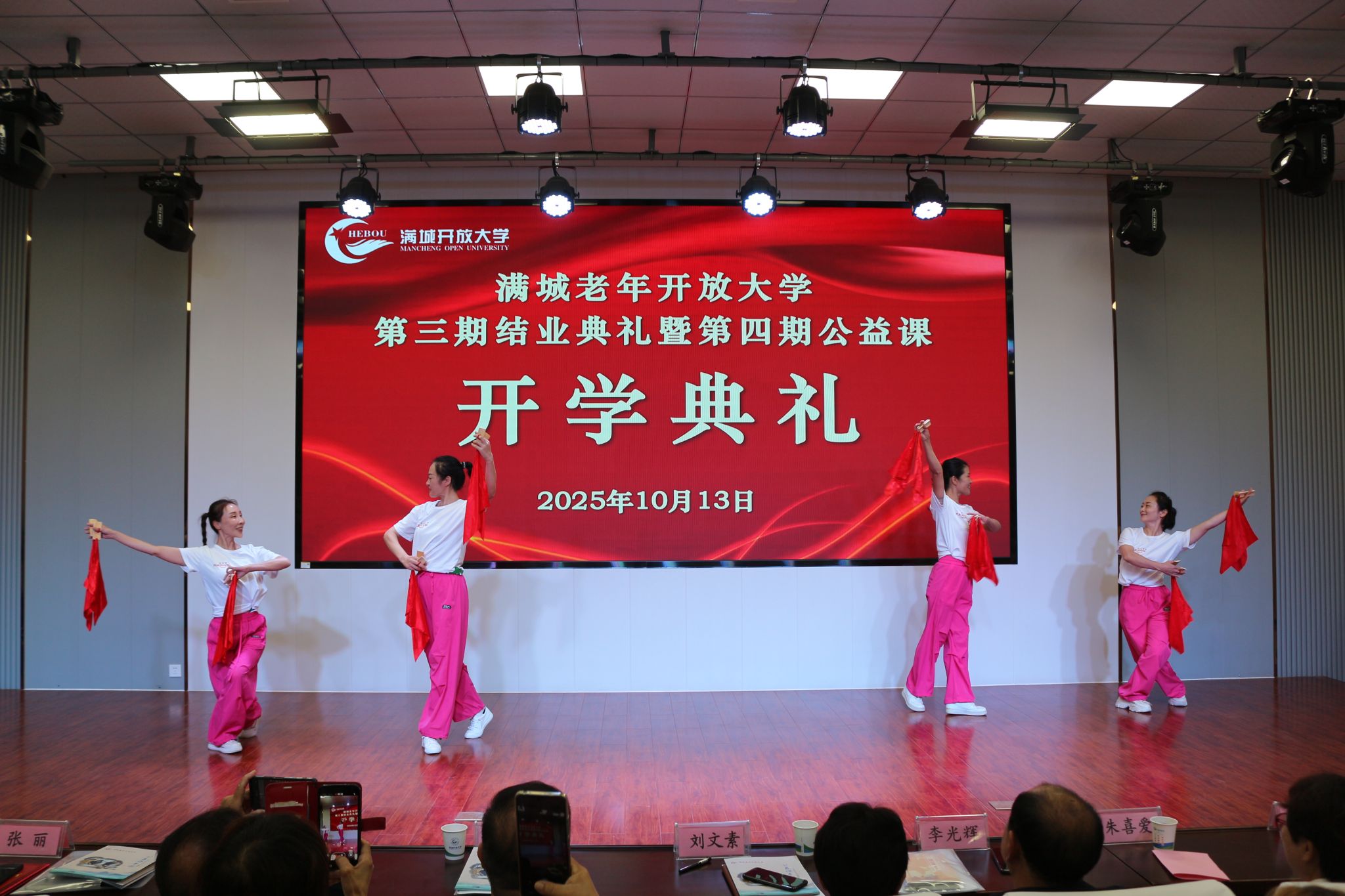 10月13日,满城老年开放大学隆重举行第三期结业典礼暨第四期公益课程开班典礼。活动由满城开放大学、满城社区教育学院主办,开放大学党支部书记校长康小江、区教体局教工委委员李光辉、区委老干部局三级主任科员刘文素等领导出席典礼,授课教师、新老学员共160余人共同见证了这一承前启后的时刻。