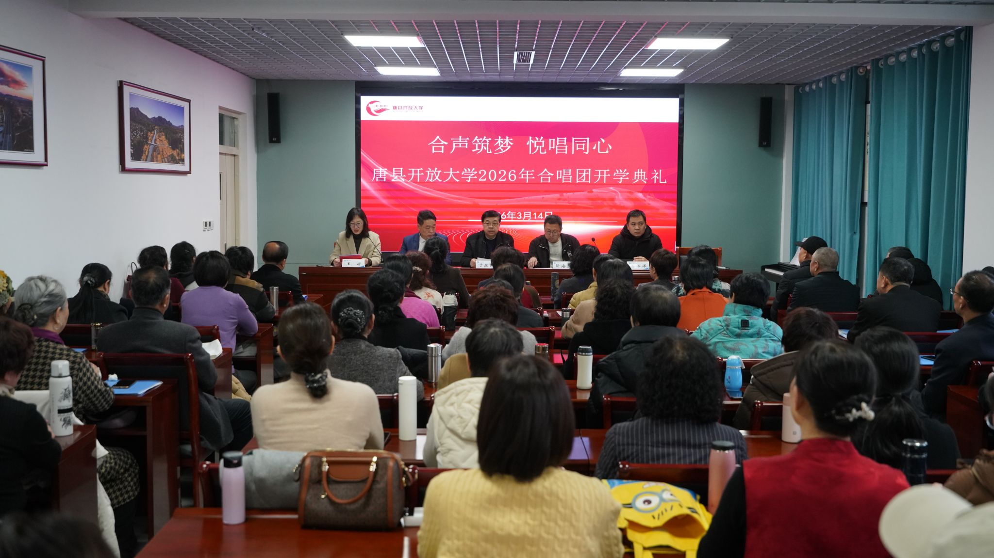 春和景明,歌声启新。3月14日,唐县开放大学合唱团“合声筑梦 悦唱同心”主题开学典礼顺利举行,100余名学员齐聚一堂,共赴新程。