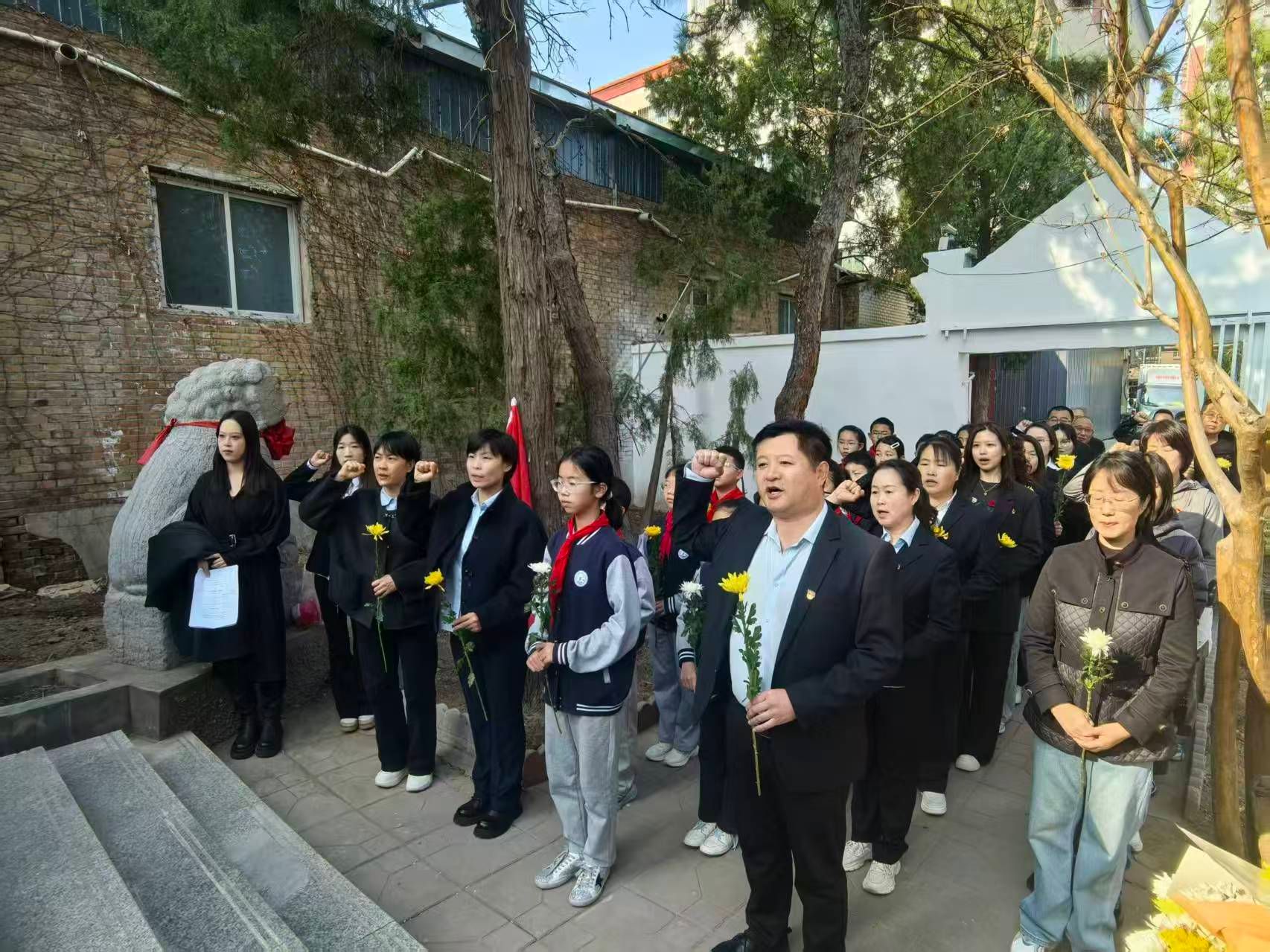 上午9时,祭扫活动启幕。现场庄严肃穆,全体人员怀着崇敬之心向烈士纪念碑敬献花篮,集体默哀并鞠躬,深切悼念革命先烈。师生代表在碑前发言,追忆先烈事迹、歌颂革命精神,表达传承英烈遗志的坚定决心。沟西小学带领全体少先队员重温入队誓词,稚嫩的誓言铿锵有力;容城开放大学党支部书记、校长崔红梅带领全体党员重温入党誓词,铮铮誓言彰显初心使命。