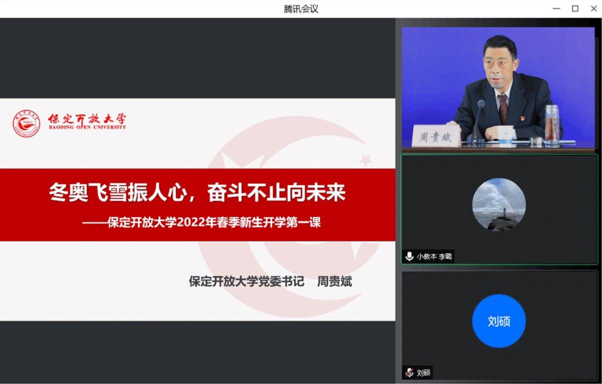 4月16日、17日,我校举行2022年春季开放教育新生线上开学典礼。学校党委书记周贵斌为新生讲授第一堂思政课,教师张珍代表全体教师发言,全体新生齐聚“云端”在线观看了本次典礼。周贵斌书记以“冬奥飞雪振人心,奋斗不止向未来”为题讲授了四个方面的内容:传承冬奥精神,引领拼搏自强;砥砺奋进四十余年,不忘初心立德树人;春风送暖启征程,乘势而为向未来;又是一年春光好,正当扬...