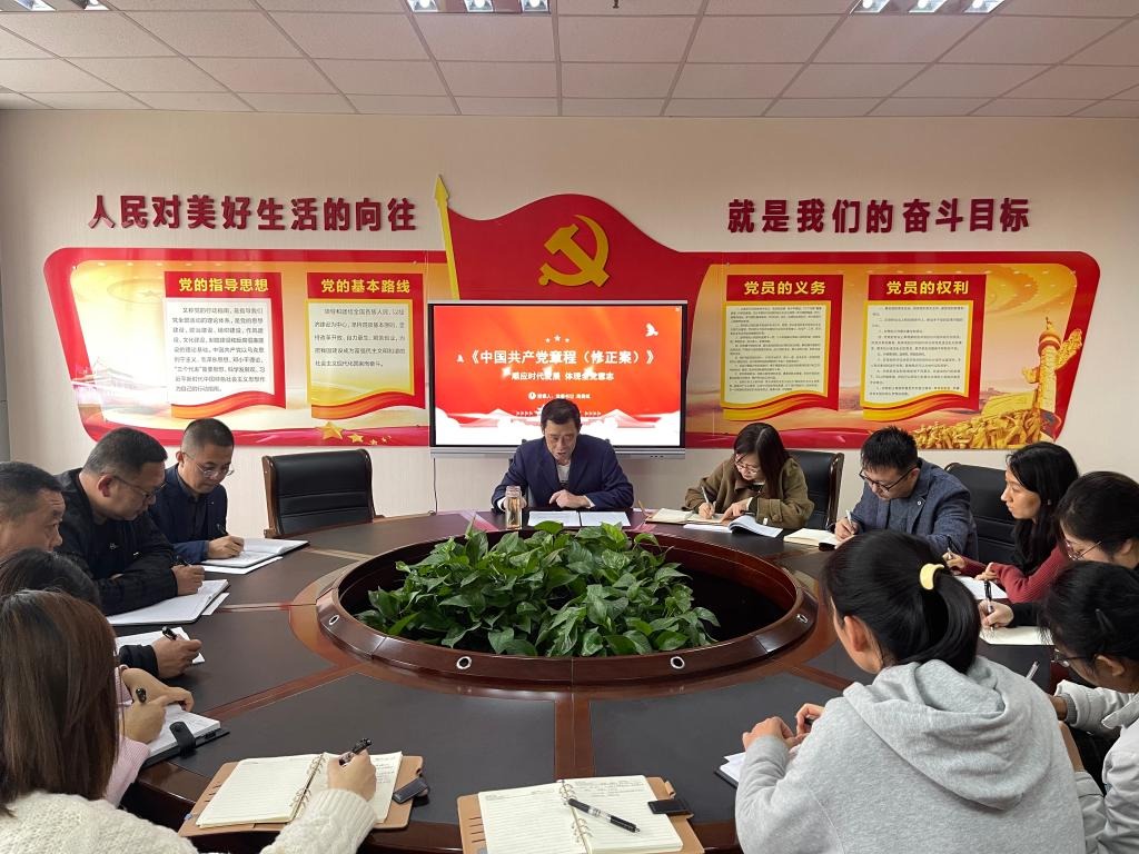 10月27日,党委书记周贵斌以学习贯彻党的二十大精神为主线,围绕新修改的《中国共产党章程》,结合工作实际,为第一党支部党员讲授党课。周书记对《中国共产党章程》进行了领学,要求党员在日常工作当中,要自觉学习党章、遵守党章、贯彻党章、维护党章。他强调,要把学习宣传贯彻党的二十大精神作为当前和今后一个时期的重大政治任务,把学习党章和学习党的二十大精神有机结合起来,...