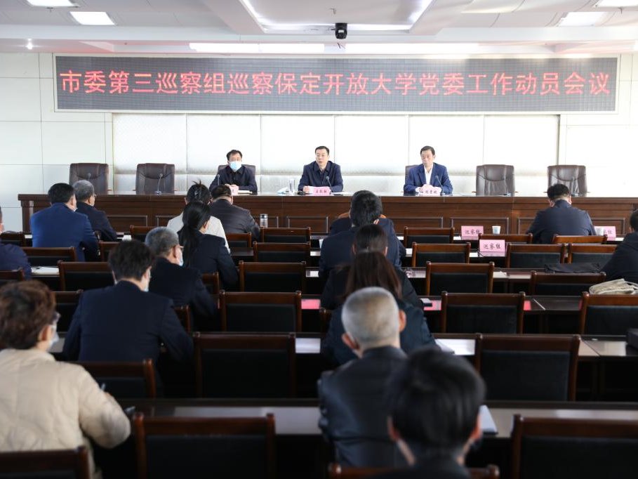 按照市委统一安排部署,11月4日,市委第三巡察组正式进驻保定开放大学开展常规巡察,并召开巡察工作动员会。第三巡察组组长王敬朝作巡察动员讲话,保定开放大学党委书记周贵斌主持会议并作表态发言。市委第三巡察组全体成员、保定开放大学全体领导班子成员、各处室、党支部负责同志以及退休干部参加会议。会上,王敬朝通报了巡察组的职责任务,全面安排部署了巡察组在保定开放大学的巡...